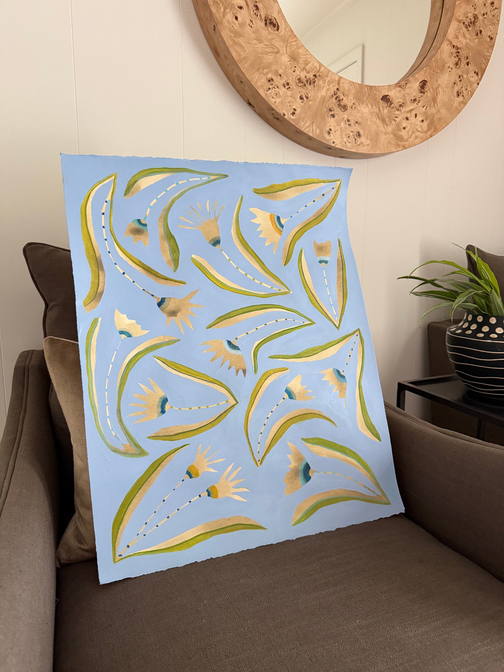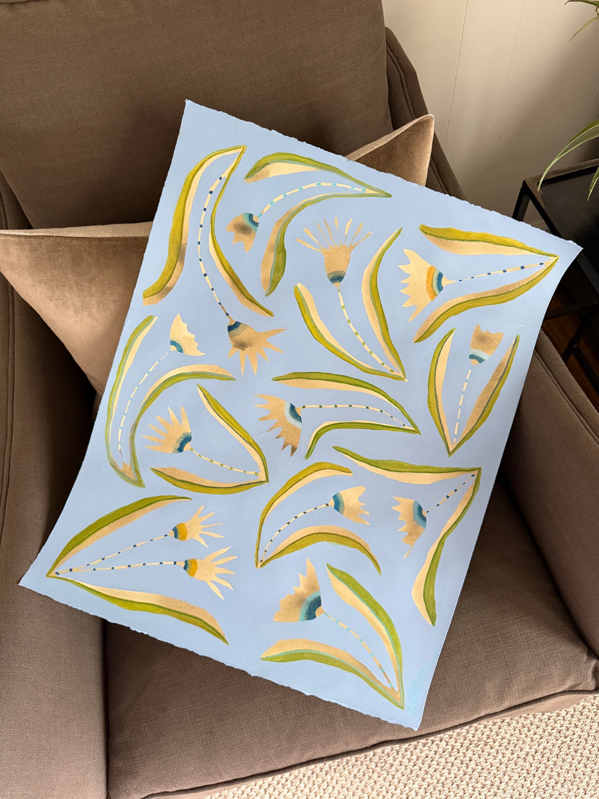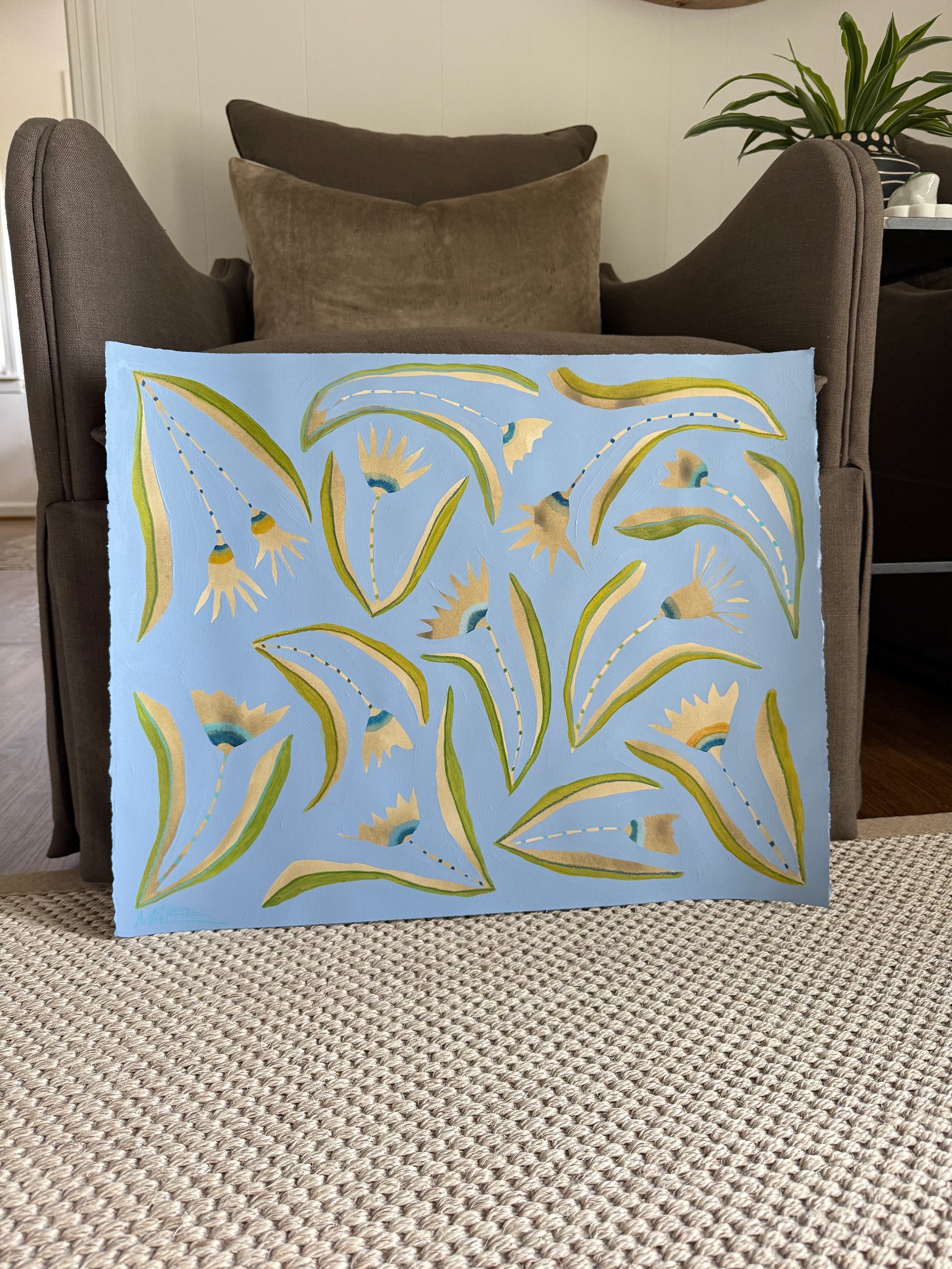 Original acrylic and watercolor botanicals on cold pressed paper with deckled edges.