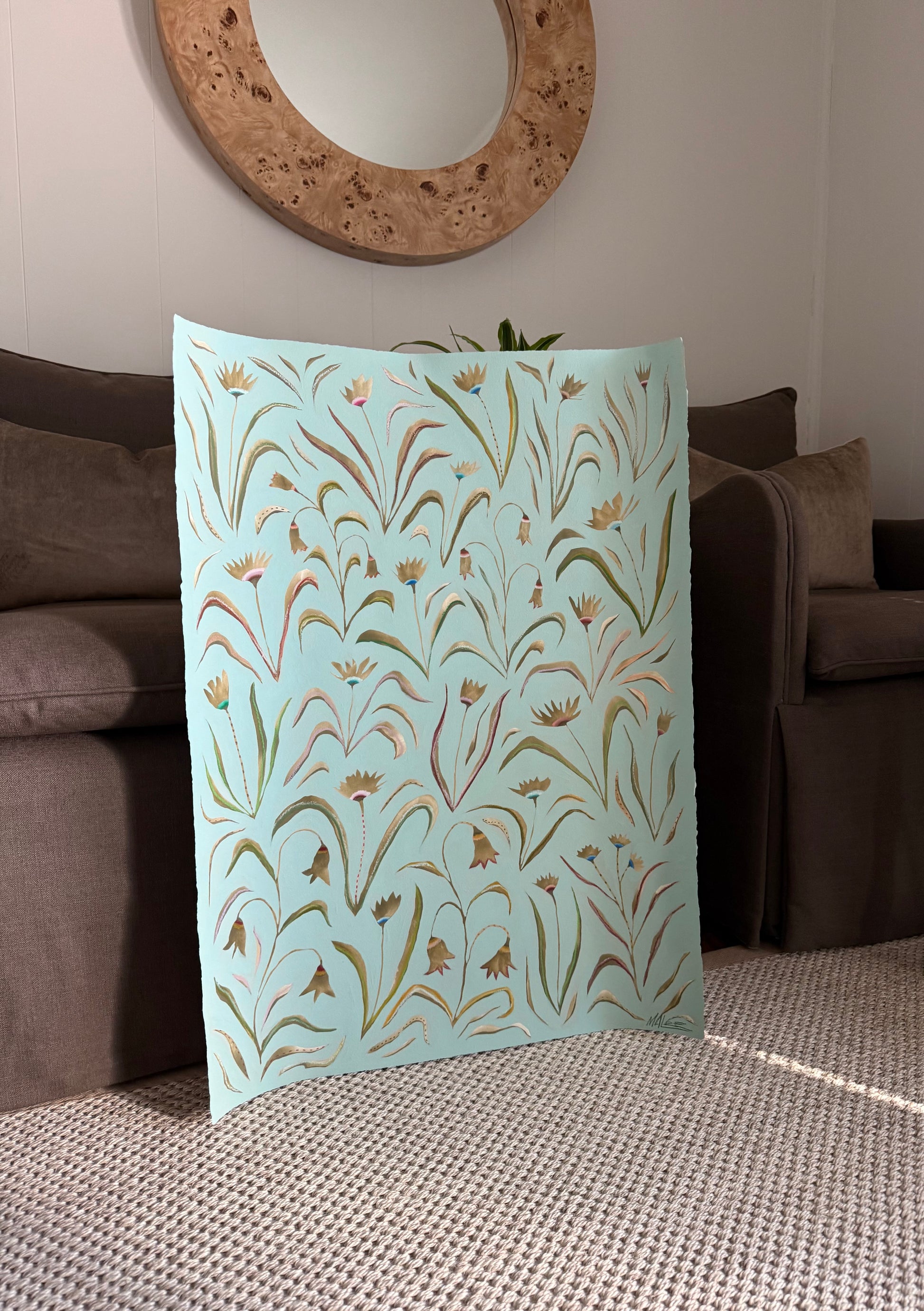 Original acrylic and watercolor botanicals on cold pressed paper with deckled edges.