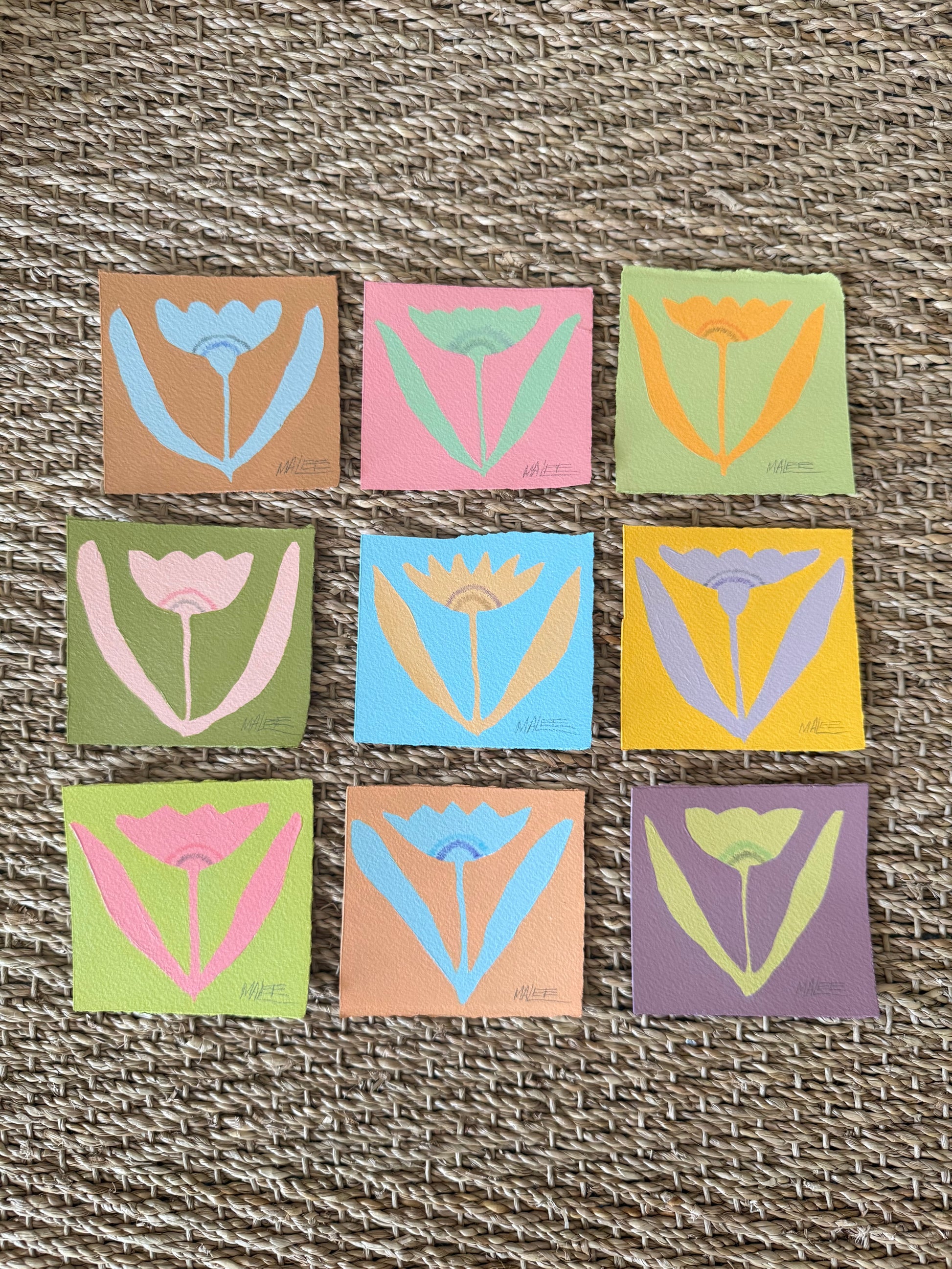 Original acrylic botanicals on cold pressed paper with deckled edges. Sold individually.