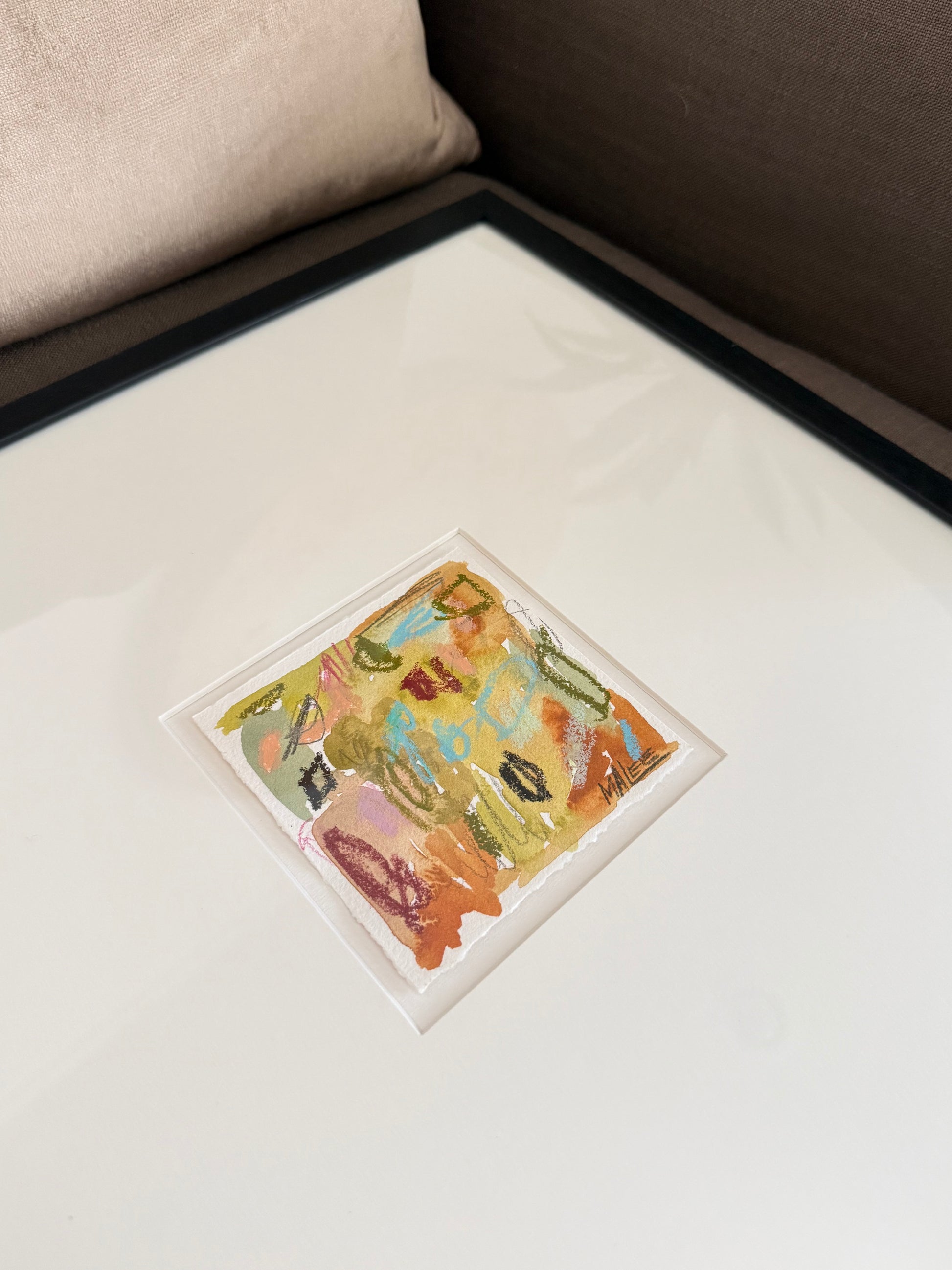 Original acrylic and oil pastel abstracts on paper. Framed in black.