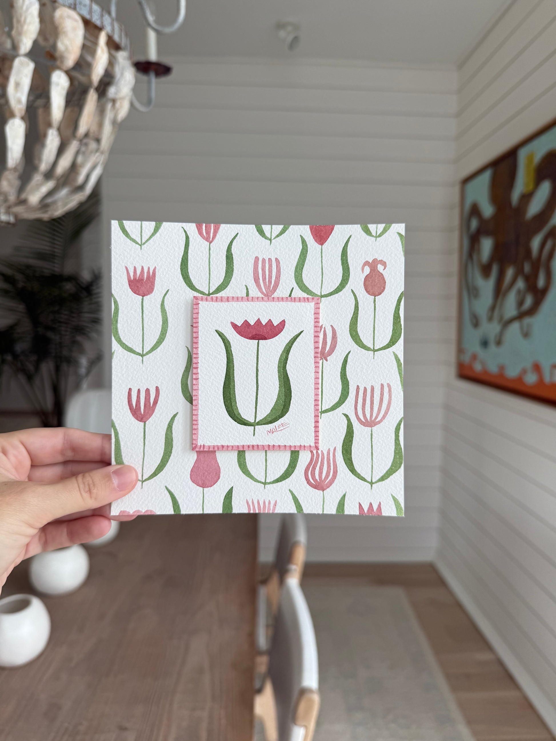 Original watercolor botanicals layered on botanical background.