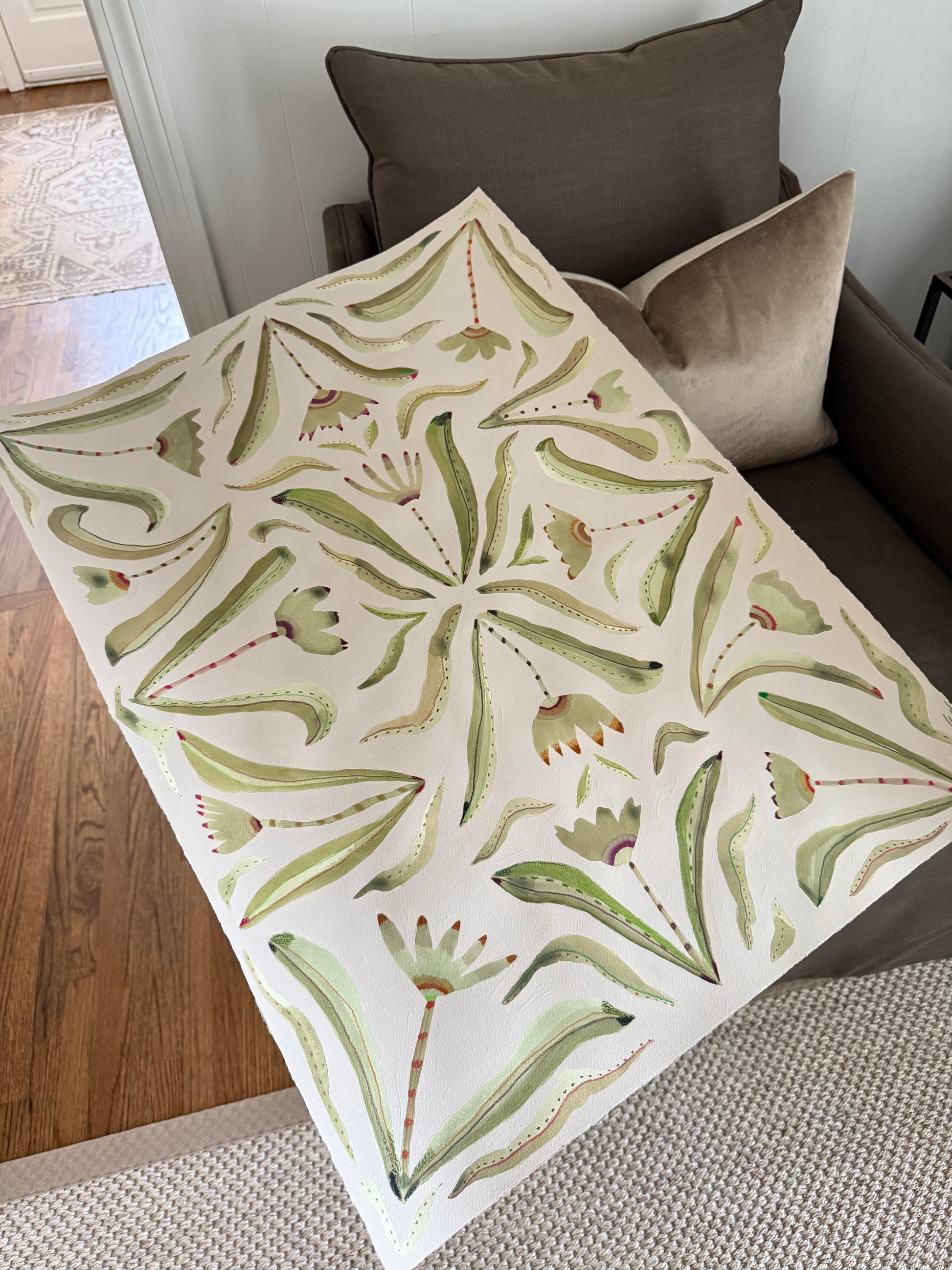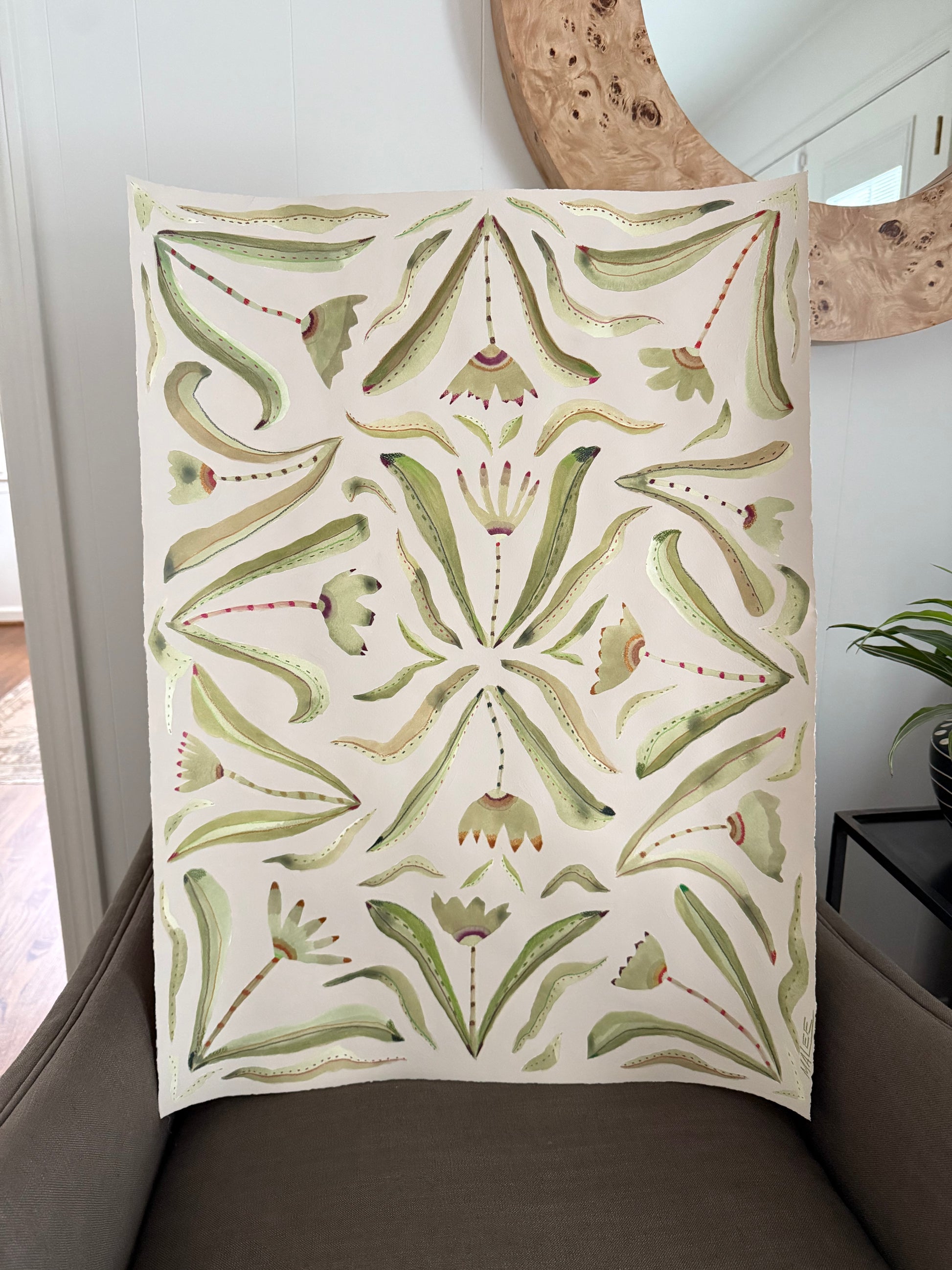 Original acrylic and watercolor botanicals on cold pressed paper with deckled edges.