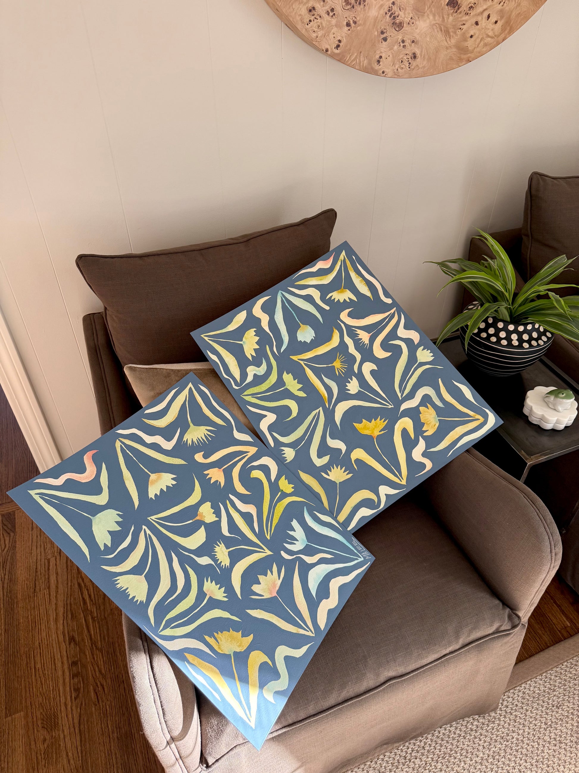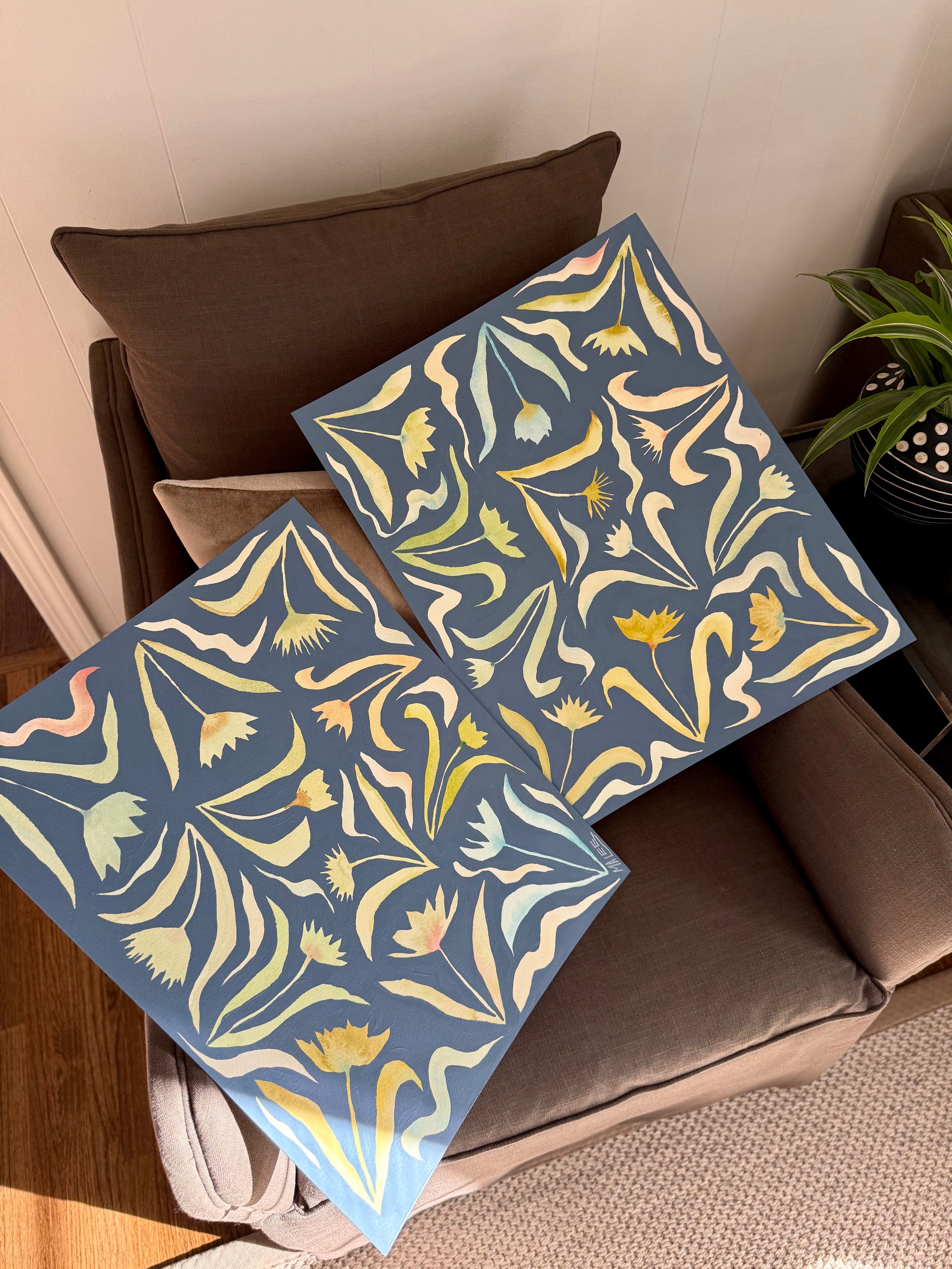 Original acrylic and watercolor botanicals on 300lb paper.