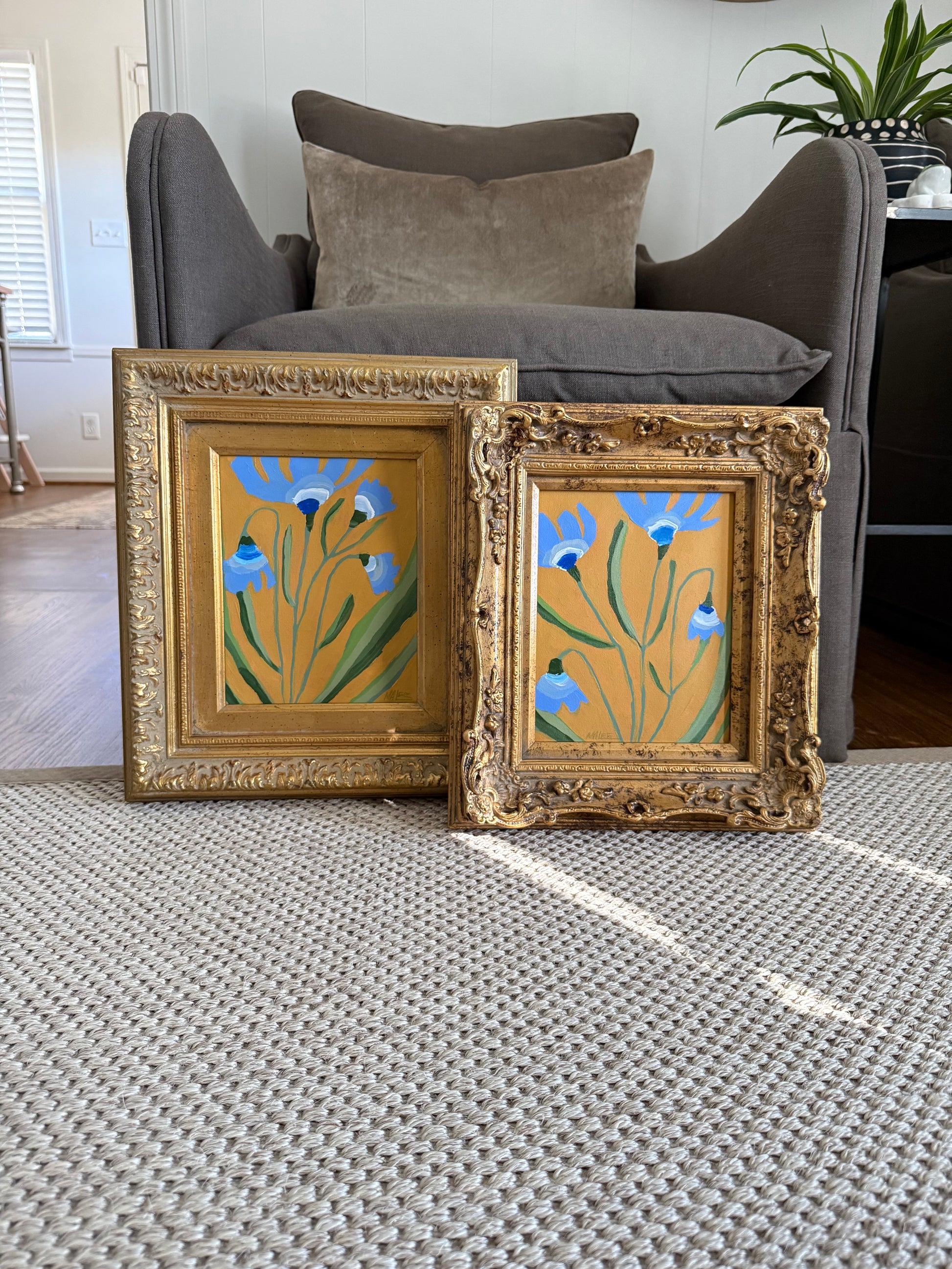 Original acrylic botanicals on canvas. Framed in vintage gold frame.